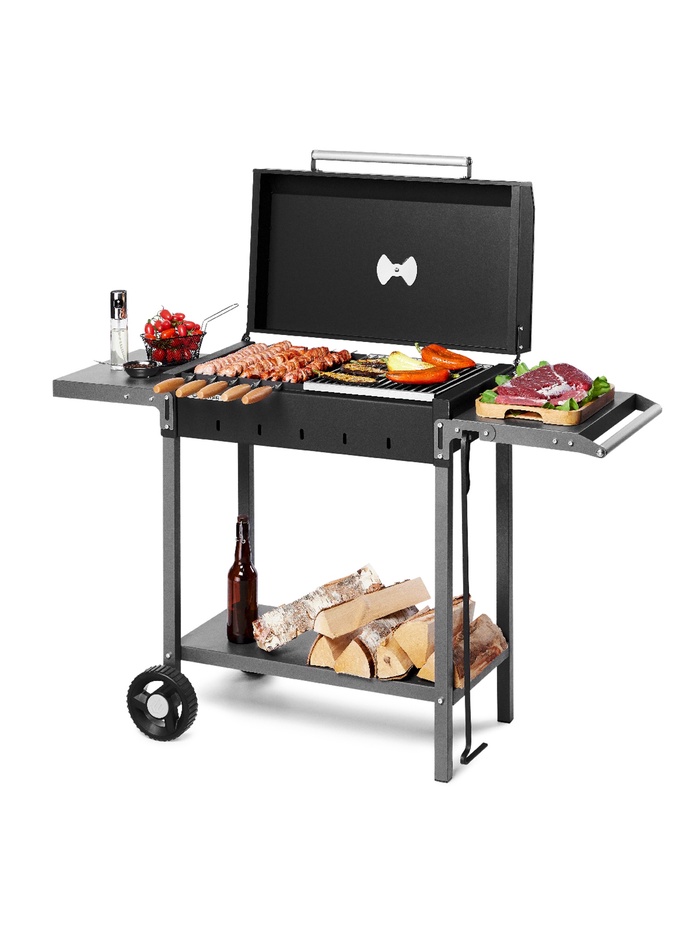 Мангал MAH 203, 128.5×52×90.1 см, 2 мм, колеса, боковые полки, крышка